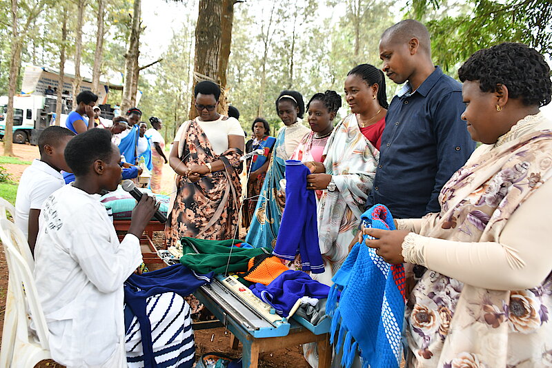 Kuri uyu munsi hizihizwaga Umunsi Mpuzamahanga w'Umugore, Tibengana Jacqueline arishimira iterambere akesha kuboha imyenda mu budodo bikaba bitunze umuryango we ndetse akaba amaze kubyigisha abakobwa 60 bari baracikirije amashuri.
